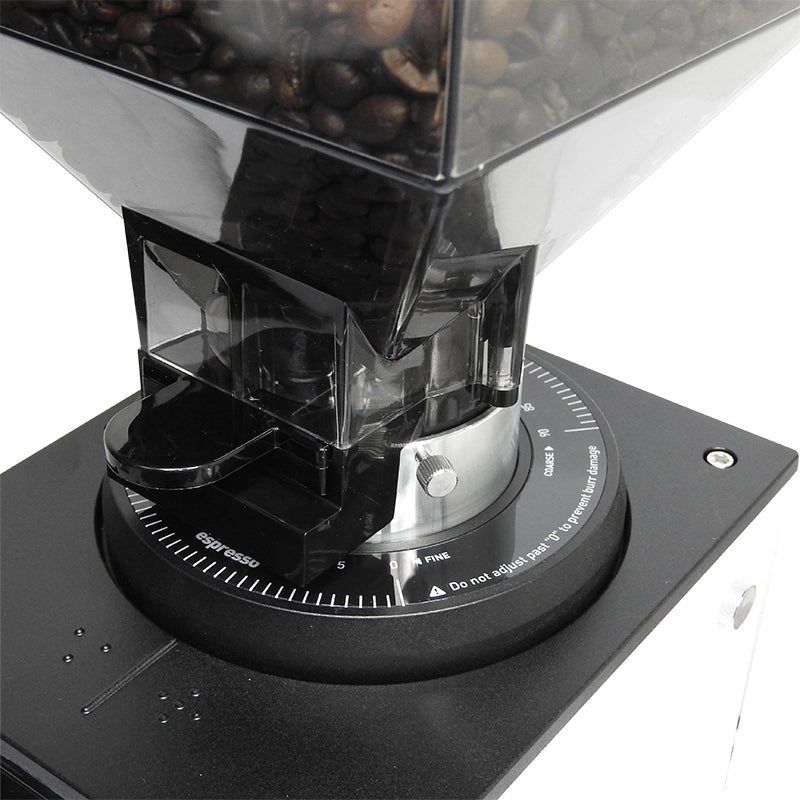 - Muelas planas de 64 mm en acero inoxidable para una excelente consistencia.
